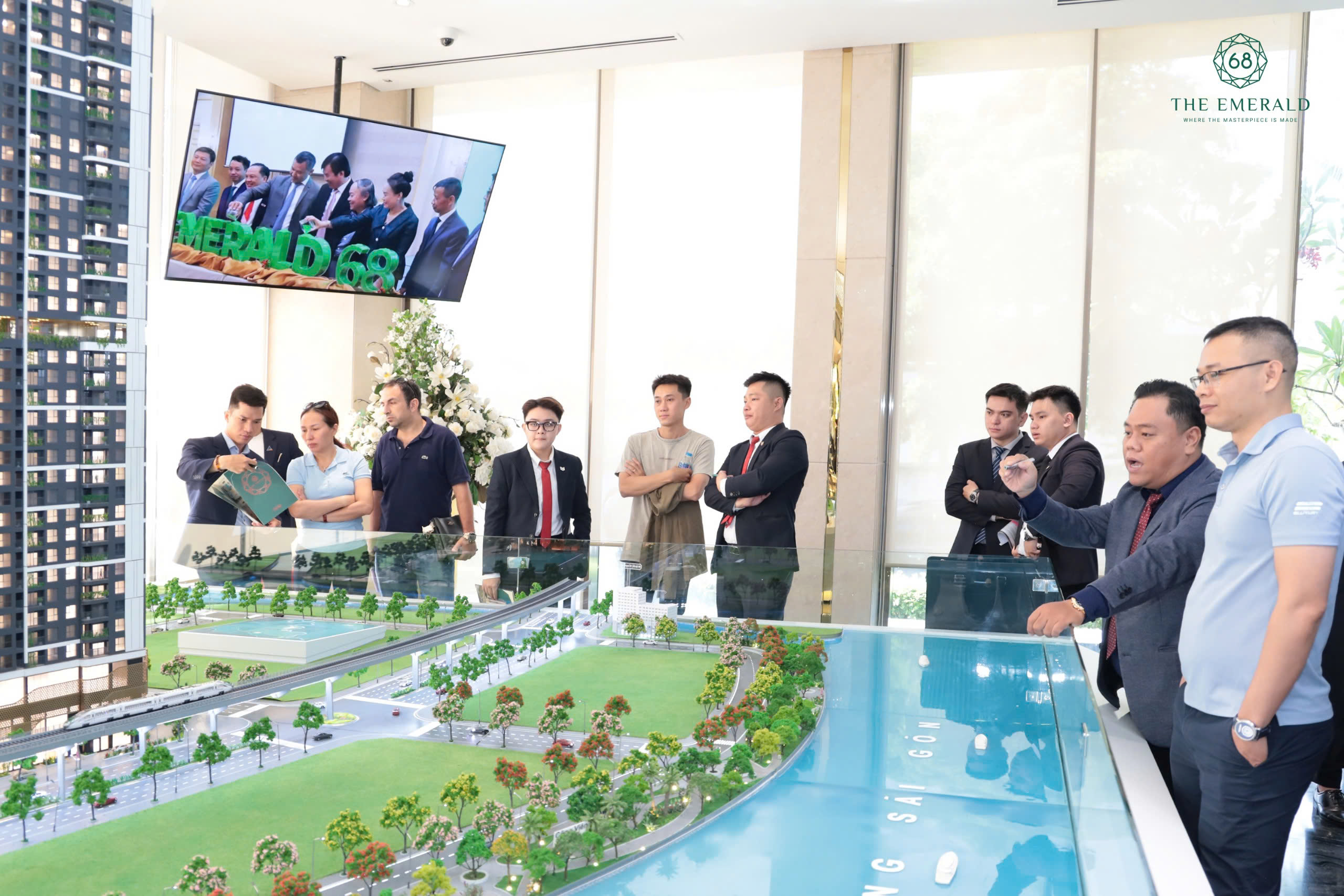 Ngay từ sáng sớm, khu vực Sales Gallery dự án – nơi diễn ra sự kiện đã đông kín khách hàng để cùng chờ đợi khoảnh khắc công bố mở bán sản phẩm. Khách hàng quan tâm dự án The Emerald 68 bên cạnh các nhà đầu tư trong nước còn có khá nhiều người nước ngoài.